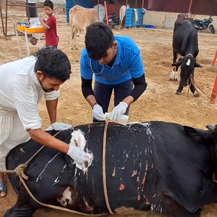 By the grace of Shri Radha Rani, we started this gaushala 4 years ago to help serve the cows of Vrindavan by providing means for their food, shelter, and medication. Our mission is to care for stray, abandoned cows, bulls, retired oxen, and orphaned calves. We provide them with hay, flour, fresh grass, clean water, medical attention, and a place where they can recuperate from injuries and stay peacefully. Additionally, we provide special medical services to the sick cows and bulls that are discovered on the streets of Vrindavan. In addition to providing veterinary services, we also provide powerful traditional ayurvedic treatments for wound healing, such as neem, turmeric, herbs, etc. Many cows, bulls, and calves are homeless in Vridavan. They don't have a place where they can find shelter in hot weather or a windbreak from the cold. A corral or dry lot must be available to keep the cows and bull in when irrigating and when the pasture needs a rest from grazing. Organizations that work with cows and bulls are unable to provide the necessary medical care for injured animals due to the high cost of medicines. This often leads to animals suffering and sometimes even dying from preventable injuries.