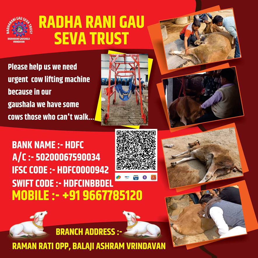 Address: Radha Rani Gau Seva Trust, Bhadravan, Mant nauzil road district Mathura. State - Uttar Pradesh